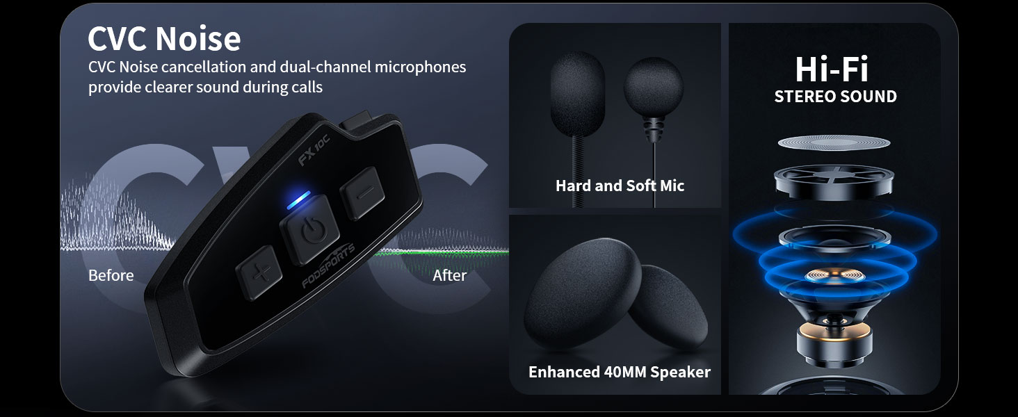 I ordered these units for my father and I to use on our upcoming trip to Sturgis in August.As you have already probably seen , doesn’t come with instructions. There are plenty of installation videos on how to get it installed into your helmet. The clip was useless on my helmet so had to use the 3m sticky pad to mount. Seems to be doing great.The fx8 paired seamlessly to iPhone 13.I usually wear a half helmet but installed this in a modular helmet. At first I was super disappointed because I mounted the speakers in the factory determined speaker positions in the helmet. The sound was low and terrible! Turns out the speakers were too high and too sunken in.Speaker position is everything! Determine where the speakers need to be in relation to your ears inside your helmet firstand then mount. Speakers attach via Velcro so re-mounting them was no problem. I had to purchase some additional velcro circles to build them up a bit to get closer to my ears. This was due to my helmet design but you may or may not have this issue. Once I got them positioned right, wow the sound was loud and impressive!Phone calls are surprisingly clear at 80mph + and the person on the other end can clearly hear me with little road noise! This is with my modular helmet open! I love this about the unit.After 30 days of owning it, and using it almost daily, I only have two disappointments.1- the comms function, which was my primary reason for purchasing it was sub-par. It doesn’t seem to auto connect/pair automatically to the other unit and when trying to use comm on the road the volume is not high and the mic noise cancelling doesn’t seem to work. I was hoping the talking clarity would be as good as a phone call but it just isn’t the case.2- voice command sucks - seems to only work when engine is off and it’s relatively quiet. You can double tap the “-“ button and trigger Siri voice activated commands but I would rather just say “ Hey, Siri” and it work…<br />3- there is a rubber plug type cover that goes into the charging port that covers it and keeps it protected from the elements. Mine keeps popping out and won’t stay in. I am concerned that it could ruin the unit if it gets wet …. Well that leads me to the most impressive part of this. Fodsports customer service.The company checked in after I received my order and I informed them about my charge port cover. They sent me another unit 2 day shipping!! That is amazing customer service.For its small flaws I can’t see riding without it and I haven’t gone back to my half helmet yet. Just having the music alone when out on a ride makes this totally worth it to me. Battery life has been outstanding.I would buy again and I would definitely buy it again.If comms worked as good as it should it would have been 5 stars.
