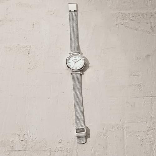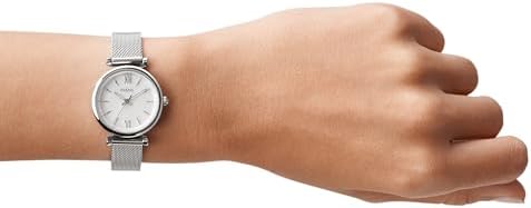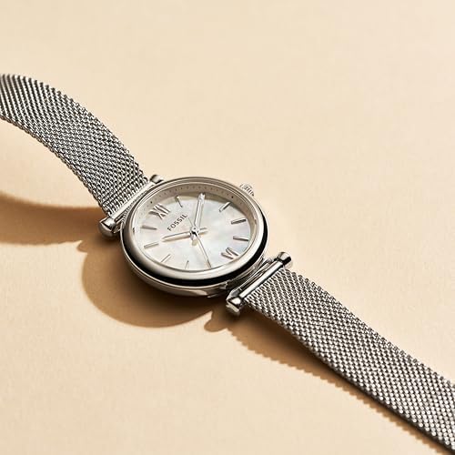Fossil Women's Carlie Mini Quartz Stainless Steel Mesh Three-Hand Watch, Color: Silver (Model: ES4432)