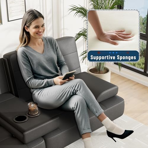Distinct Features: Modern style, color options, compact size Selected surface, cushion, and leg material Easy sofa back adjustment in 90, 120, 180 degrees Versertile as sofa, recliner, bed for different situations Cup holders and throw pillows included as additions to life style Solution for small living room, apartment, business office, dorm Futon Specifications: Color: Black Material: PU Leather Weight Capacity: 550 lbs in stable Seat Height: 14 inches Overall Futon: 65 (L) x 30.7 (W) x 28 (H) inches Overall Sofa Bed: 65 (L) x 32 (W) x 14 (H) inches