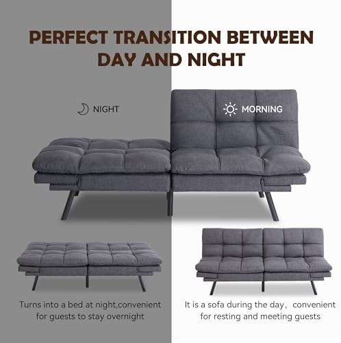 Futon Sofa Bed,Grey Convertible Couch Memory Foam Futon Convertible Couch Bed Sofa Sleeper Love Seat Daybed Sofa for Living Spaces,Apartment,71'' (Grey)