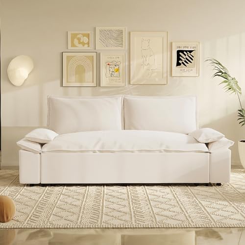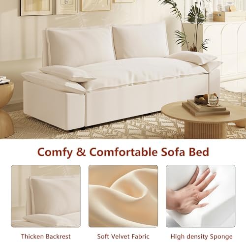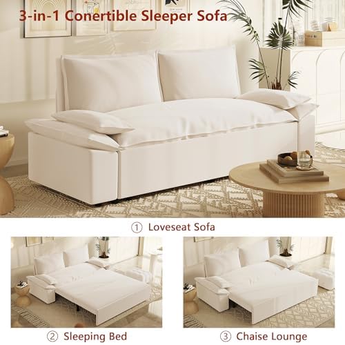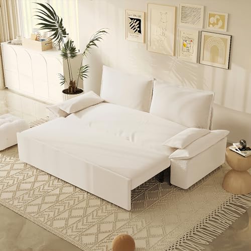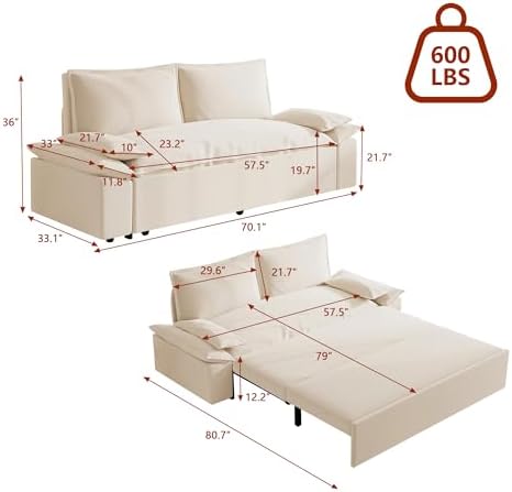 Sofa Size: Sofa Size: 70.1" W x 33.1" D x 36" H; Sleeper Size: 57.5"W x 79"D x 12.2"H, the multifunctional pull-out sofa bed can be placed in living room and bedroom, it can be used for guests or children's bed. Mechanism to ensure conversion between seating/sleeping positions.