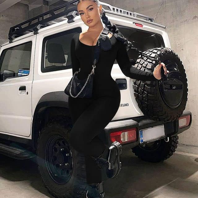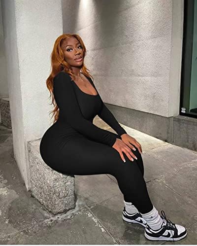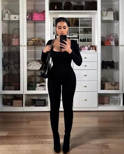 GOKATOSAU Women's Sexy Long Sleeve Bodycon Solid Outfits Club Rompers Jumpsuits