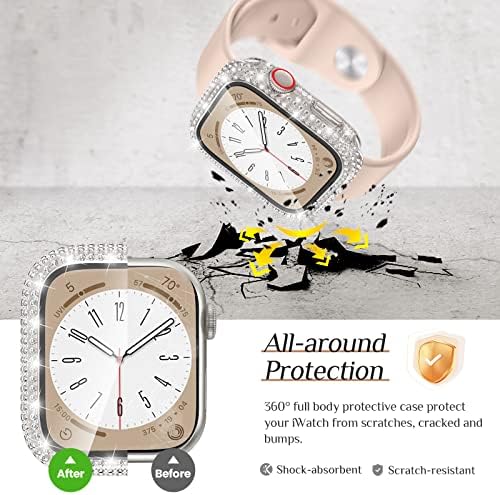 Customer Reviews 4.5 out of 5 stars 3,966 4.5 out of 5 stars 3,897 4.3 out of 5 stars 76 4.5 out of 5 stars 3,494 4.5 out of 5 stars 2,245 4.5 out of 5 stars 4,036 4.1 out of 5 stars 235 Price $13.99 $12.99 $16.99 $9.99 $16.99 $16.99 $19.99 Compatible Models iWatch All Series iWatch Series 9/8/7/6/5/4/SE iWatch Series 9/8/7/6/5/4/SE Apple Watch All Series iWatch Series 9/8/7/6/5/4/SE iWatch Series 9/8/7/6/5/4/SE Apple Watch All Series Materials Double-rows rhinestones Single-row rhinestones Unique shiny crown metal strap Silicone Silicone Silicone Stainless steel Feature Not waterproof Not waterproof With a bling waterproof case Special glitter fabric surface Special glitter fabric surface Special glitter fabric surface Soft slim metal rope Feature Edge protection Full screen protection Fashinonale & durable Soft & comfortable Soft & comfortable Soft & comfortable Fashionable & stylish Package 4 Pack 2 Pack 1 * Band + 1 * Case 1 * Band 1 * Band + 1 * Bumper 1 * Band + 1 * Bumper 1 * Band