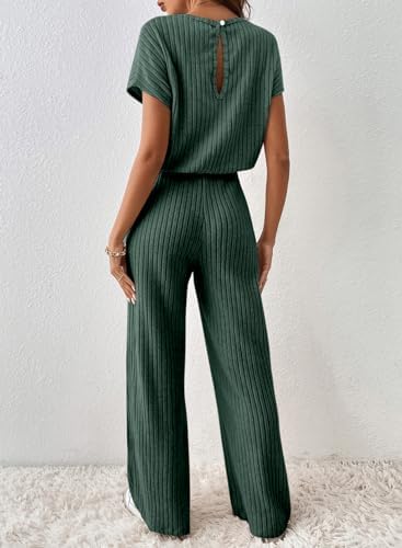 Women Ribbed Crewneck Long Pants Jumpsuits