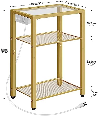 I will say they are a little shorter than I’d like-but all the parts were labeled clearly except maybe 2 but no big deal. Easy to assemble other than a few screws didn’t want to get in there. I wanted it specifically to hold my lamp, phone, square Kleenex and enough space left to hold a drink on top, my Cpap machine on second shelf and my trash can and gallon of distilled water for cpap on the bottom. Perfect! If you use Resmed 11 cpap it fits with room to spare. The electrical parts work. The tempered glass top just sits on top-so if you have kids or crazy pets keep that in mind. I don’t think you can beat the price of this set of tables.