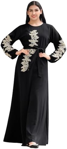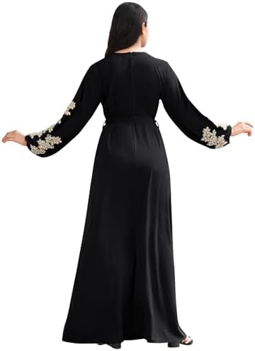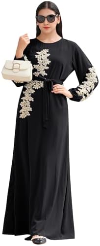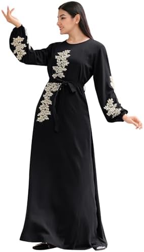 IBAKOM Abaya Dress for Women Floral Embroidery Muslim Robe Eid Ramadan Prayer Islamic Clothes Dubai Attire Turkish Jalabiya