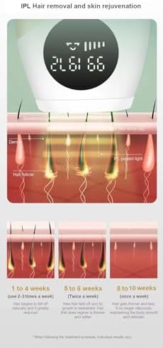 I’ve been using this home laser hair removal device for couple of weeks now, and I am beyond impressed with the results! I’ve tried a few different hair removal methods in the past, but none have been as effective or convenient as this.The device is incredibly user-friendly, with a clear instruction manual that made the setup process straightforward. The machine itself is lightweight and comfortable to hold, which is a big plus when treating larger areas like the legs or arms.Super recommended ???