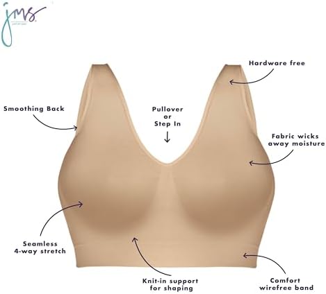 Comfort and support team up in this blissfully soft bralette from the Hanes Just My Size collection. This Pure Comfort pullover bra offers effective light support and subtle under-bust shaping with strategic knit-in support zones and a wider, no-roll underband. Silky, seamless fabric stretches four ways for a flexible fit that moves when you do. Wider straps and a fuller back help provide gentle smoothing while the moisture-wicking fabric keeps you cool and comfortable. Sure to become your new go-to t-shirt bra, you'll love the seamless no-hardware design for pullover or step-in ease, as well as its sleek look under clingy clothes.