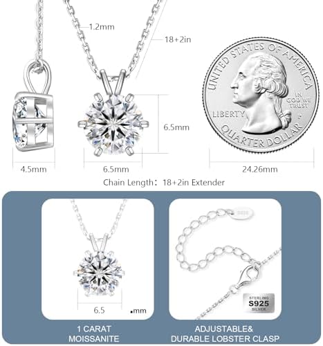 S925 Sterling Silver Moissanite Solitaire Necklace-Hypoallergenic Nickel free