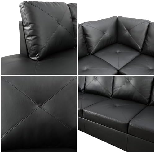 GlasFlength L Shaped Sectional Couches, Modern Convertible Lounge Leather Sofa with Ottoman Storage, Comfy Modular Sectional Sofa for Living Room Furniture Sets, Small Spaces, Black