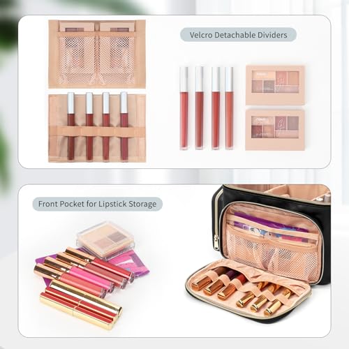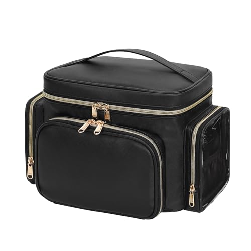Relavel Travel Makeup Train Case Makeup Cosmetic Case Organizer Portable Artist Storage Bag with Adjustable Dividers for Cosmetics Makeup Brushes Toiletry Jewelry Digital Accessories Black