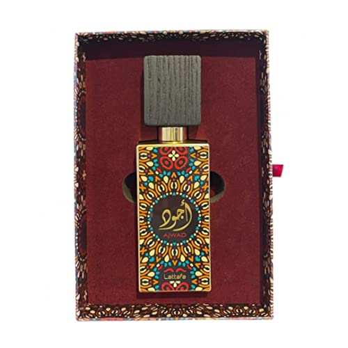 Lattafa Ajwad Edp a natural spray sweet perfume full of aromas of amber, rose and sandalwood. It is slightly sweet vanilla scent, nicely caramelized, with a lot of fruit and cedar wood blended. Using this smell gets into your mind away, where the Amira tells her stories and where dreams become reality. Relax your mind and let yourself be charmed by this oriental fragrance cocktail. It is packed in a beautiful elegant bottle and a beautiful outer box. Top Notes: Bergamot, Litchi, & Fruity Notes Middle Notes: Jasmine, Roses, & Cinnamon Base Notes: Cedar, Sandalwood, Amber, Musk, & Vanilla.