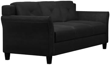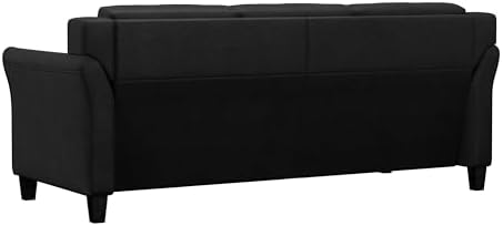 So far so good! Always skeptical to buy furniture online, I prefer to walk-in to a furniture store and actually sit on the couch. This was very easy to put together. I did it alone in 30 minutes. A bit of a challenge connecting the seat to the arm rest but, because I did it alone. It’s super firm but, that’s a good thing if you plan to sit on this often because this will most likely start to show signs of use but, with the firmness it should keep its shape longer. I will be back to update on rather or not it holds it shape. The back, well could be a little thicker or a firmer stuffing. I feel this is the area that will show signs of use first, indentation and such. The arm rests they are nice and firm and should last as long as you don’t use it to lift yourself up every time. The material inside will most likely indent. Overall this is a comfy couch. The color is very pretty, the material feels velvety but is not velvet. The black does collect lint but, easy to brush off. The one thing I don’t like, the legs you put on are really cheap feeling, they feel like plastic and I worry that they will not hold the max weight requirement over time.The size of the couch is perfect for a smaller space, their sizes were almost right on. A little short in areas, I measured but, not enough difference for me to complain. Overall I am really satisfied and happy with the quality. A good buy for the price. Buying the chair next!!