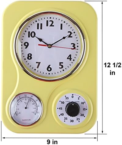 Our retro style, yet modern kitchen timer clock has a built-in one-hour timer for cooking and a temperature dial showing your room temperature. The wall clock features an easy-to-read retro modern type font. This is an attractive and practical piece for any kitchen that can use a spare timer. The clock is a large size that measures approximately 9.5-inches wide at the top and 13.3-inches long. Require 1 "AA" battery (not included). Lily’s Home offers beautifully designed clocks, dishware, garden decorations, and more to add a touch of style to any home. Whether you’re looking for a statement piece for your living room or looking for a way to add more color to your garden, Lily’s Home has just what you’re looking for!