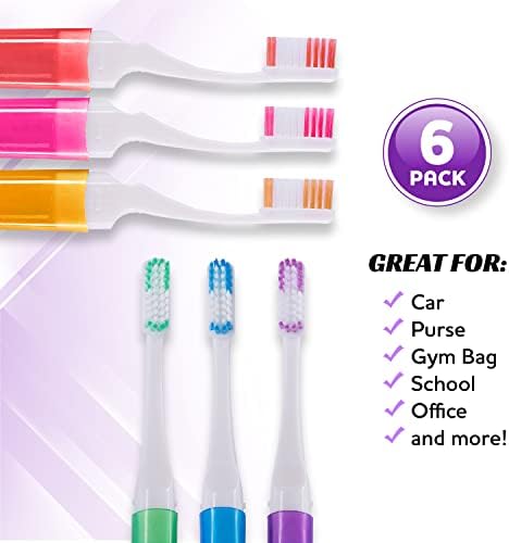 Travel Toothbrush with Case Pack Inclusions: 6 PCS of Colorful Travel Toothbrush with Case Manual Toothbrush Healthy Benefits: Using a Hard bristled toothbrush will fight plaques and harmful particles from your mouth which makes it healthy. A clean and healthy mouth will prevent the harmful particles from entering your lungs, hence, protecting you from getting different respiratory illness as well. Hard bristle toothbrushes are an excellent in-between texture for healthy teeth cleaning. The bristles are stiff enough that they efficiently clean the teeth of plaque and built up food particles, but they aren't too hard where they can cause damage to the enamel. Hard bristle toothbrushes are also recommended by dentists because they effectively fight particles and plaque. Hard strength bristles may clean more effectively than softer ones that may push out or bend. This kind of bristle can be harsh on gums if pressure is too heavily applied when brushing.