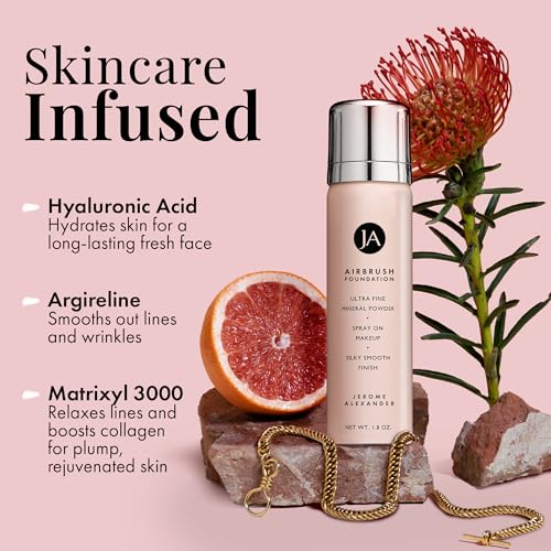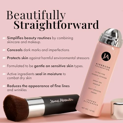 MagicMinerals AirBrush Foundation by Jerome Alexander – 2pc Set with Airbrush Foundation and Kabuki Brush - Spray Makeup with Anti-aging Ingredients for Smooth Radiant Skin - Medium