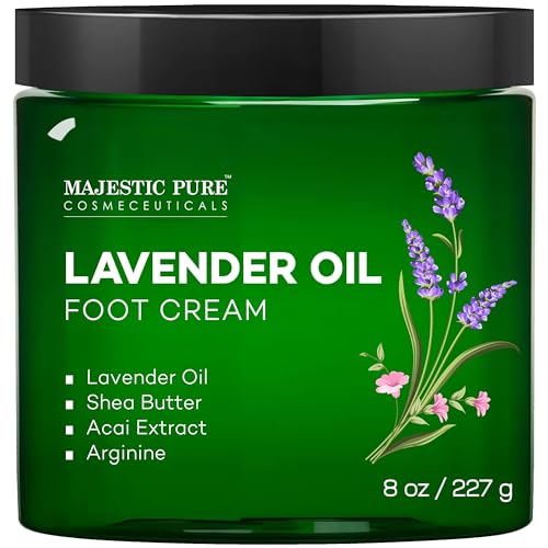Majestic Pure Lavender Oil Foot Cream creates "a feeling like gentle warm sunshine on the skin." The innovative active complex stands out by providing pleasant, relaxing and long- lasting effects without feelings of stinging or burning. Makes for great relaxing, premium massage while softens and conditions dry skin, rough skin, and calluses.