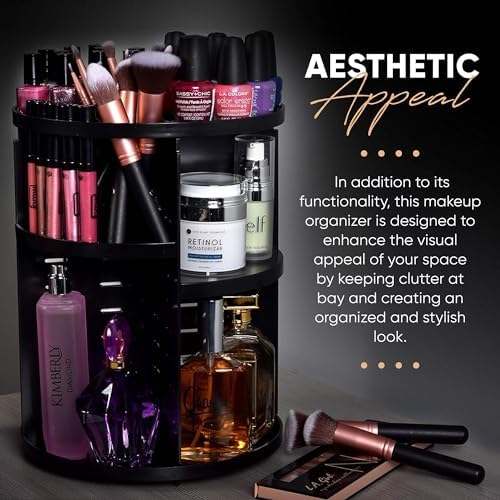 I absolutely love the 360 Rotating Makeup Organizer! It has made my beauty routine so much easier and more enjoyable. The rotating design is a game-changer as it allows me to easily access all of my makeup and skincare products without having to rummage through drawers or shelves.One of the best features of this organizer is its ample storage capacity. The multiple shelves and compartments are well-sized and can accommodate various sizes of makeup products, from lipsticks and brushes to palettes and skincare bottles. It's amazing how much I can fit in this organizer, and it has helped me declutter my vanity and keep everything in its place.The rotating function is smooth and effortless, allowing me to quickly spin the organizer to find the product I need without any hassle. The 360-degree rotation also gives me a clear view of all my products, making it easy to select and use them.The sleek and modern design of this makeup organizer is another highlight. Its minimalist and clean aesthetic adds a touch of elegance to my vanity, and it complements any decor style. The durable and high-quality materials used in its construction also make it sturdy and long-lasting.In addition, the assembly of this makeup organizer was straightforward and hassle-free. It came with clear instructions, and all the pieces fit together perfectly. I was able to set it up in minutes and start using it right away.Overall, the 360 Rotating Makeup Organizer has been a fantastic addition to my beauty routine. Its ample storage capacity, smooth rotation, sleek design, and easy assembly make it a must-have for anyone who wants to keep their makeup collection organized, accessible, and stylish. I highly recommend it.