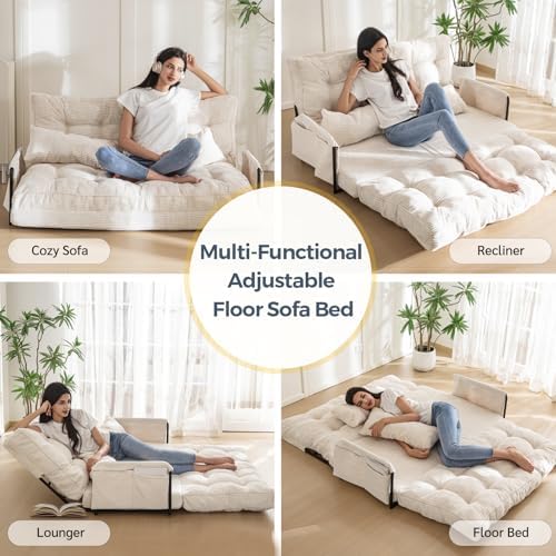 I recently purchased the MAXYOYO Adjustable Floor Sofa Couch in beige, and I must say I’m really impressed! The five-position adjustability is fantastic; I can easily switch from sitting upright to lounging back. The inclusion of the pillow provides great neck support, too.The foldable design makes it super convenient for my small living room, and I love that it doubles as a sleeper for guests. The fabric feels soft and comfortable, and the color fits well with my decor.However, I did notice that while it’s great for lounging, it might not be the best option for extended sleeping, as it can get a bit firm after a while. Overall, it’s a stylish and functional piece that’s perfect for my needs!