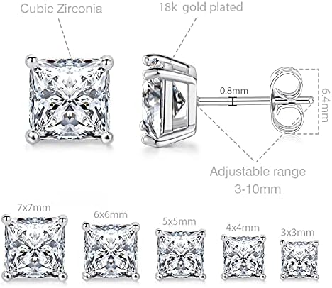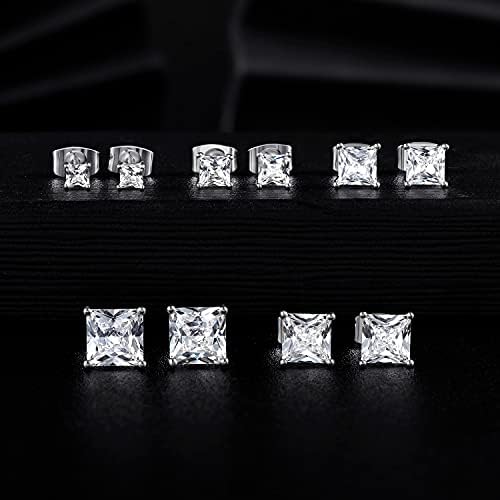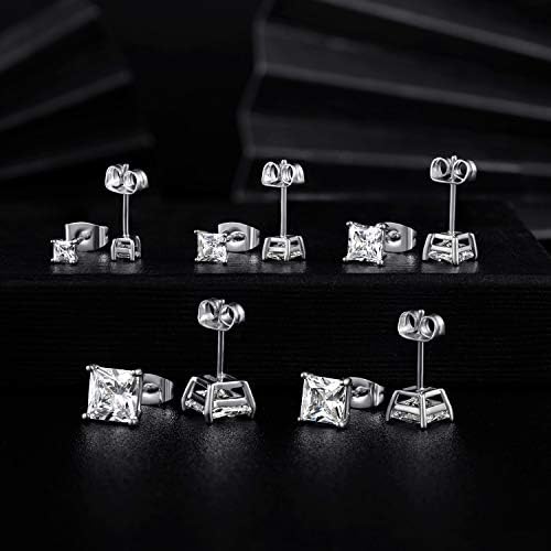 MDFUN 18K White Gold Plated Princess Cut Clear Cubic Zirconia Stud Earring Pack of 5 Pairs