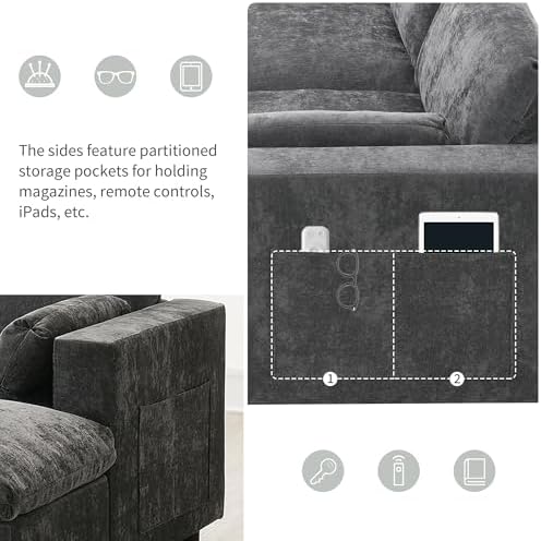 With two storage bags on either side of the sofa, you can easily store items like remote controls, or magazines within arm's reach. This can help keep your living room tidy and organized.