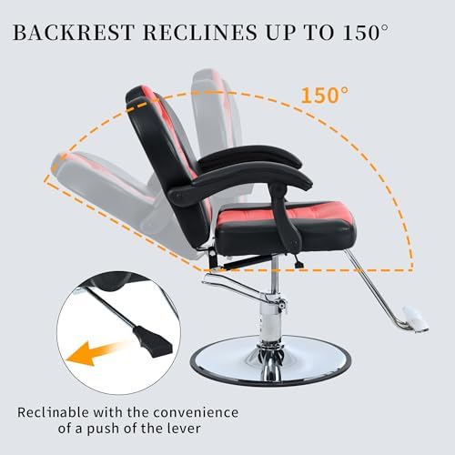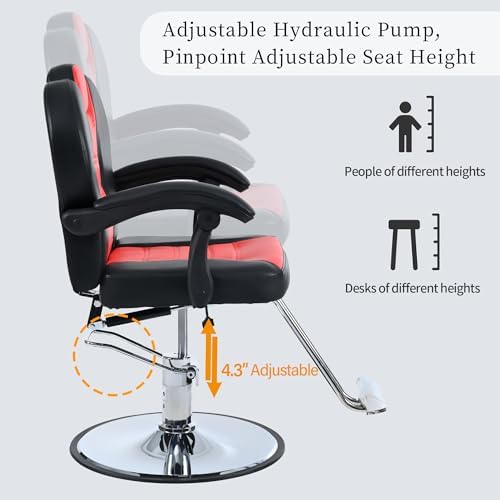 Merax, Red+Black Classic Reclining Barber Salon Chair, for Hair Stylist with Heavy Duty Hydraulic Pump, 360° Rotation, Tattoo Shampoo Beauty Equipment, 25.2D x 19.30W x 41.7H