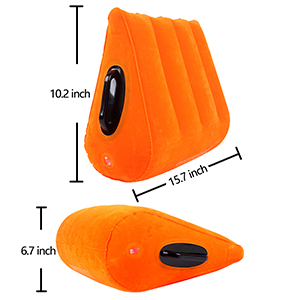 Inflatable by mouth or pump, electric air pump, portable triangle sex pad. When fully inflated, the capacity is approximately 300 lbs. And it's easy to store in your luggage, so you can take it with you and use it elsewhere.