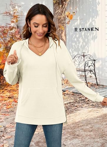 MOLERANI Hoodies for Women Waffle Knit DrawstringSweatshirts With Pockets