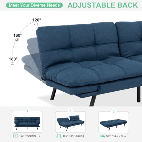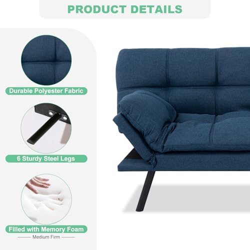 This futon is fantastic! With a weight capacity of 600 pounds, it easily accommodates my family and friends. The high-density memory foam makes it super comfy for both sitting and sleeping. I appreciate how versatile it is; I can adjust the backrest and armrests to suit everyone’s needs. It's perfect for my game room and looks great too.