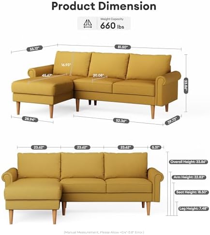 This couch exceeded my expectations. We were looking for a couch but didn’t have AFW money so we came to amazon and this couch is definitely worth it. Assembly was super easy and it makes it easy to clean too. The fabric is really soft and doesn’t scratch. My kid got crayon on the couch and I wiped it with just a microfiber and water and the crayon came right out so it’s nice that it doesn’t hold stains. Only complaints are that the couch was super stiff when we first got it set up. Took about two weeks to break it in. The second complaint is that the long piece can come apart easily but other than that this couch is really nice.