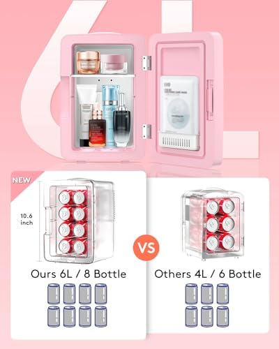 PERSONAL CHILLER 6.2L Skincare Fridge with LED Makeup Mirror, Mini Fridge Cooler and Warmer, Portable Fridge for Makeup, Skincare, Snacks, Bedroom Vanity (Pink)Recommendations