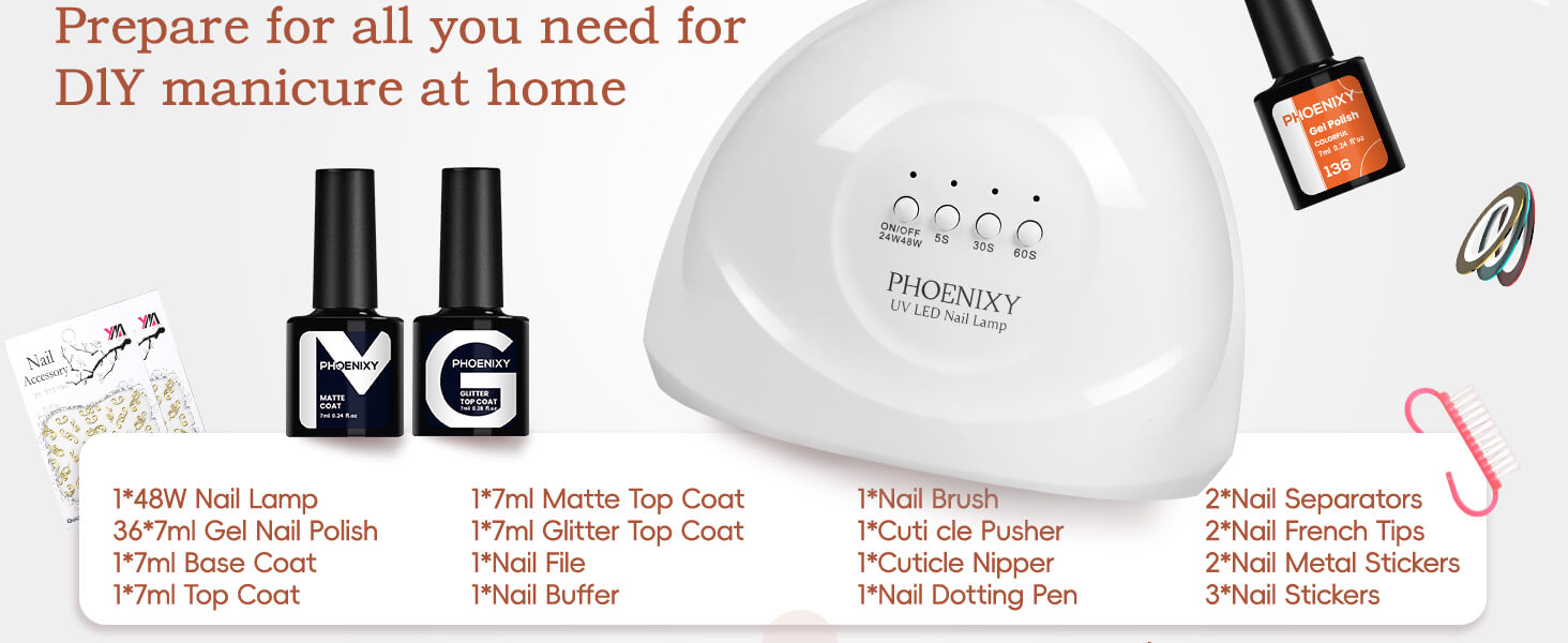 It came with everything as advertised. Works great, nail polish last about 3 weeks
