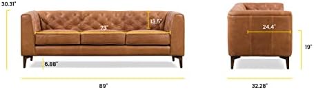 Overall I love this couch. It had been sitting in my cart for quite some time as I've been gathering items for a living room makeover. Recently it went on sale for around $1400, so I decided to go ahead and buy it. I had a lot of trepidations about buying such an expensive and large item without actually sitting on it first. But I'm glad I made the jump.Here are my key takeaways (neither Pros or Cons as everyone's preferences differ). I've only had the couch for a couple weeks now, so take this with a grain of salt...-Its quite firm. From the cushions to the arm and back rest. I was expecting this though, and I'm sure that the cushions will loosen up a bit over time.-Compared to some other reviews, I did not find any issues with the stitching or any other constructed aspects. Maybe I just got lucky.-The angle in which you'll sit is going to be rather upright. I wouldn't say an absolute 90 degree angle, buts its close. The frame of the couch is build in a manner that positions the cushions at a slight angle, so that does increase the angle at which you'll sit. If I had to guess, I'd say you'll sit at approximately 95 degree or so, give or take.-I wouldn't recommend this couch if you're looking for something that more plush and conducive for to being an absolute couch potato.-Adding an ottoman/ chaise lounge or some other type of footrest makes for a very comfortableseated/ lounge position.-The leather itself is very nice. It is REAL full grain leather. I am very impressed with the quality and feel of the leather. Educate yourself on the different types of leather or "leather" products.-The natural grain of the leather is beautiful and leather has a pleasant natural scent. Very very subtle... as it should be.-The leather will scratch with day to day use. Duh. That is normal. If you have pets or other rambunctious humans roaming around your house, I wouldn't recommend this couch if scratches will bother you.-Assembly was straightforward and easy. Unbox, attach the legs, done.-Delivery was seamless and the two gentlemen that delivered it was very professional.-The packaging was thick robust cardboard and the couch itself was well protected and delivered without damage. The hardest part was of the whole thing was breaking down the cardboard box so it would fit in the recycling bin. For the environmentally conscience, I was very happy to find that the packaging didn't consist of a any Styrofoam, only some sheets of protective foam.The only thing I'd change about the couch is that I wish there was just a little more padding in the arms and back.If I encounter an issue, I'll try to update this review accordingly.