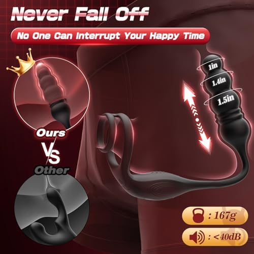 Its a fun toy to spice things up. Biggest problem of prostate toys I have faced is it they do not stay where they are supposed to stay and often slips out. This one fits well and stayed in place. You will need a bit of patience and lubing to get the plug where you need it (because of the design), but once it is there, it is comfortable and the vibration is pretty powerful. Thrusting is also powerful.Options you have through mobile app to change vibration configuration are different from the settings you have through button options.The rings on it are reasonably stretchy, some lubrication on those will make you feel more comfortable in wearing them.Overall, product feels high-quality, easily washable, waterproof, and battery lasts long.