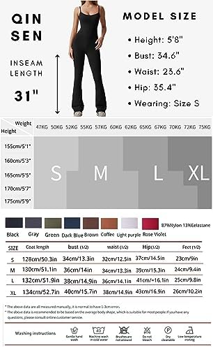 • 1 QINSEN JUMPSUIT 2 SEXY & FLATTERING 3 MUST HAVE IN 2023 BRAND QINSEN INSEAM 31"-32" inch COLOR Black, Brown,Coffee, Navy Blue, Army Green, Dark Grey, Rosy, Purple PAD SUPPORT No Padded FEATURES full-Length flare jumpsuit with a square neckline in the front and sexy adjustable spaghetti straps. FIT TYPE Slim fit OCCASION summer party, workout, vacation, weekend, family party, casual tourism and daily wear,a must have one piece modest outfits PACKAGE CONTENT 1 x Womens Jumpsuits. Spaghetti Strap Jumpsuit