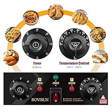 ROVSUN 24.9QT/ 23.6L Electric Deep Fryer, with knobs for temperature control and time setting, is easy to operate. And dual tank design with separate control for each side allows you to fry different food at the same time. What’s more, its faucet style oil drain and rotating fryer head make cleaning of the unit more easily. Ideal for making various fried food, such as French fries, fried shrimps, onion rings, fried chicken, etc.