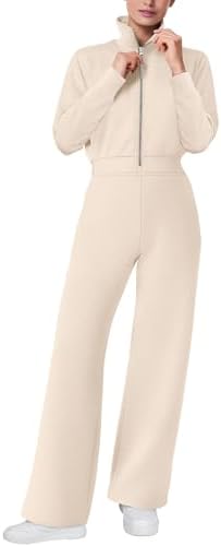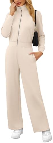 SAMPEEL One Piece Jumpsuits for Women Casual 2024 Fall Fashion Half Zip up Travel Airplane Vacation Outfits Wide Leg