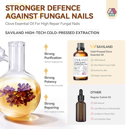 SAVILAND Clove Oil for Effective Nail Toenail Fungus: 2024 Natural Clove Essential Oil 100% Pure Orangic Nail Growth Oil for Damaged Fungal Nails Toenail Renewal Cuticle Hand Foot Care Home