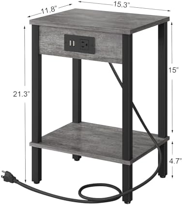VIMBER 2-Tier end table has 1 outlets, 2 USB ports,the electrical cord is 6.57 ft long.