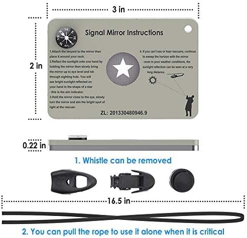Signal Mirror Survival Military Grade,Hiking SOS cry for Help Camping Mirror 2 x 3 in,Compass,Whistle