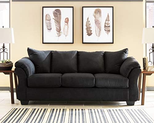 I always purchase from Ashley brand. I like the sofa. I also notice that there are pre-drilled holes in the bottom of the sofa and you can just twist the legs right into the pre-drilled holes. The fabric on the back of the sofa that covers the wood is very very thin so be careful to not lean or allow others to lean driving their knees into the back of the sofa. The seating isn't deep, but overall it's a nice comfortable sofa.