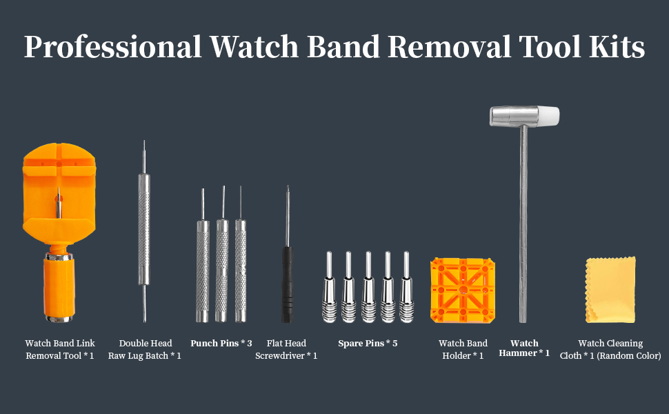 The watch band holder is used to catch the watch band, use the punch pin to hold the watch band pin and hit it with a hammer (this method is suitable for more solid pins).
