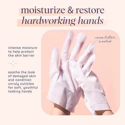 Our glove-like masks ensure silky moisture is locked in, leaving your hands soft, smooth, and supple. Packed with the richness of Cocoa Butter and its essential fatty acids, these masks provide intense moisture to help protect the skin barrier. Infused with antioxidant Vitamin E, they contribute to maintaining youthful-looking hands.