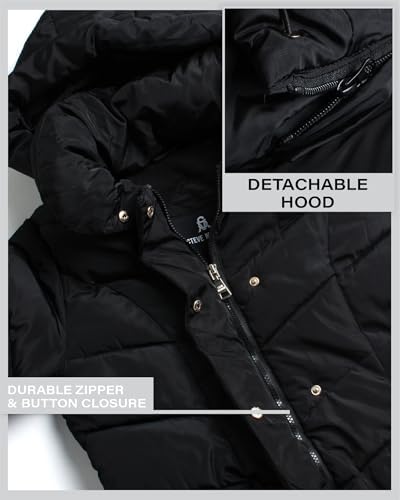 Always delivering on-point style, the Steve Madden outerwear collection will be sure to get you through any winter's chill! Thick down alternative material fills its outer-shell and its detachable hood is elasticized to seal warmth in. Features include ultra soft interior fleece lining, interior fleece cuffs and front hand pockets.