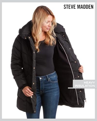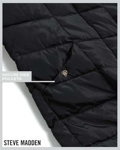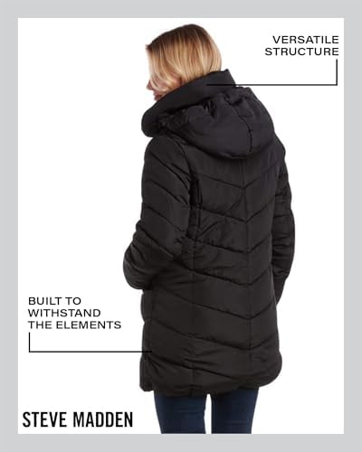 Steve Madden Women's Long Chevron Quilted Outerwear Jacket