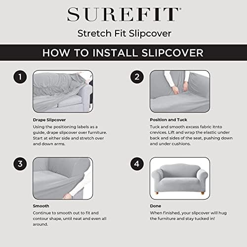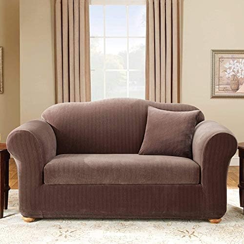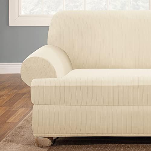 SureFit Stretch Pinstripe T-Cushion Sofa Two Piece Slipcover, Form Fit, Polyester/Spandex, Machine Washable, Cream Color