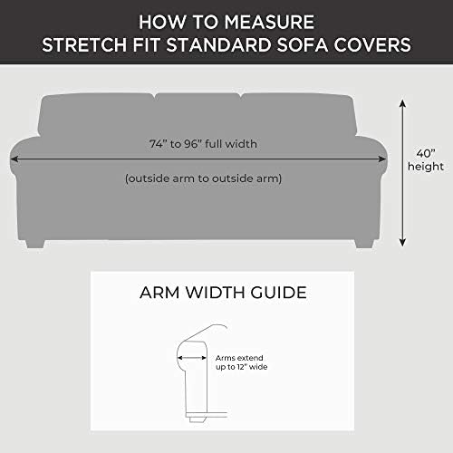 We had a very faded and dated 20 yr old couch in our vacation home, but weren't ready to replace it yet, as it still has a lot of life, it was just dated. We were looking for a slipcover to freshen it up and bring it up-to-date. After much research, I decided on this one. I liked the blue-grey color, the fabric texture (which is smooth and soft) and the forgiving nature of the stretch fabric. I was very hesitant that it would work since the sofa I was covering had thinner arms with a rattan insert along the top.To say that I am pleasantly surprised is an understatement! This slipcover fits great! The fabric is extremely stretchy and forgiving. All it takes to make it fit well is some tugging and tucking. It's not perfect, but it's a heck of a lot better than it was before we covered it.It does take 2 people to apply the cover to the sofa, so have someone there to help. Also, even after sitting on the couch for an evening, the cover stays tucked in and smooth.I've included a before and after of the couch in this review.I would recommend this slipcover to anyone and I would buy it again.