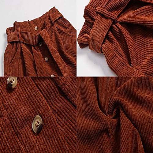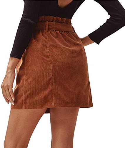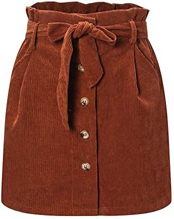 Feature: Paperbag High Waist with Belted, Button Front, Two Side Functional Pockets, A-Line,
