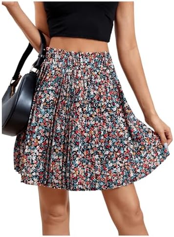 SweatyRocks Women's High Waist Mini Pleated Skater Skirt Flared A-Line Floral Short Skirt