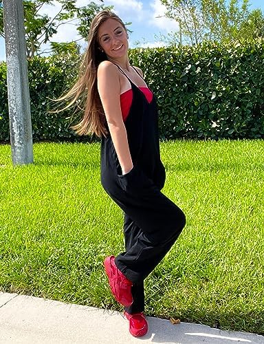TARSE Womens Jumpsuits Casual V Neck Baggy Rompers Sleeveless Loose Adjustable Spaghetti Strap Overalls Jumpers with Pockets